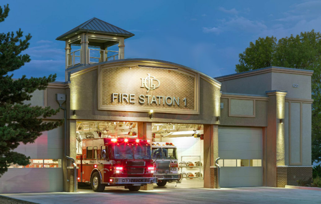 The Grand Junction Fire Station #1 project was a 13,500-sf renovation and expansion project that included an 8,000-sf remodel of the first and second floors, including the bay room. Construction also included a 5,500-sf addition of a decontamination room, 15 private dorm rooms, a laundry facility, and a new parking lot.