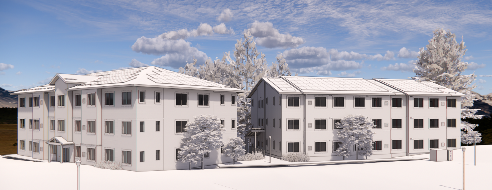 Village Court Apartments is a 40,000-sf, three-story, two-building, modular affordable housing project with 35 units. This project is an addition to the existing Village Court Apartments and includes eight one-bedroom, 13 two-bedroom, one three-bedroom, and 13 four-bedroom units.